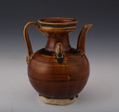 宋酱釉双系盘口瓷执壶