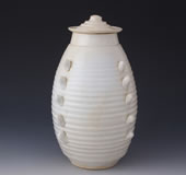 宋白釉弦纹带盖多角瓷壶