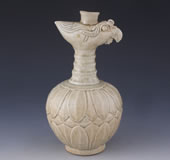 宋青白釉刻莲瓣纹凤首瓷瓶